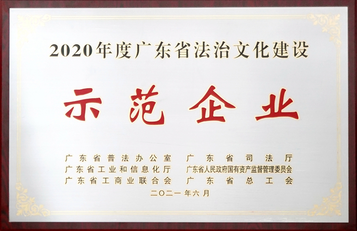 2020年度廣東省法治文化建設(shè)示范企業(yè)