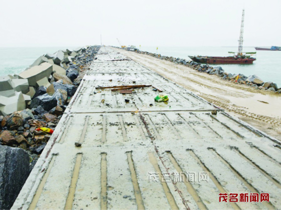 (圖為博賀新港東防波堤開始搗制防浪墻)