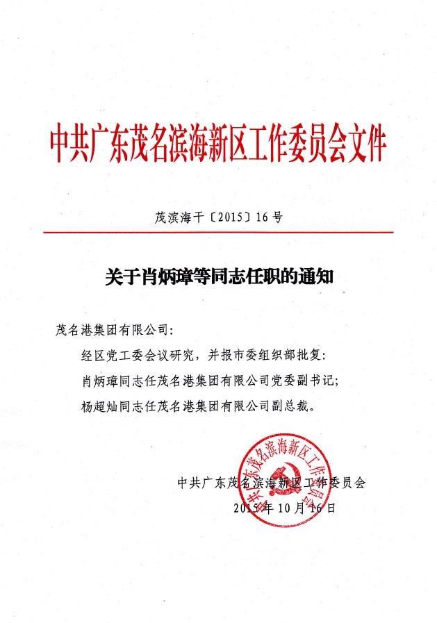 新區(qū)黨工委決定:肖炳璋集團(tuán)黨委副書記,楊超燦任集團(tuán)副總裁.pdf