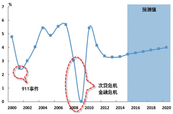 來源:中國遠洋航務 預計“十三五”期間世界經(jīng)濟和貿(mào)易的增速分別為3.8%和4.7%,世界貿(mào)易相對經(jīng)濟的彈性系數(shù)由1.48降至1.25水平,海運需求增速也將相應減緩!白叱鋈ァ卑l(fā)展將使我國海運需求由原來的放射結構,轉向全球網(wǎng)絡化結構;同時針對“走出去”面臨各種風險,要求海運在應對突發(fā)事件中更好地發(fā)揮支持保障作用。 世界經(jīng)貿(mào)發(fā)展環(huán)境變化 1. 全球經(jīng)貿(mào)增速放緩,區(qū)域和國家增長分化。 世界經(jīng)貿(mào)將保持低速穩(wěn)定,貿(mào)易彈性系數(shù)下降。圖1顯示了2000年以來世界經(jīng)濟增速的變化,可以看出,突發(fā)事件的影響相對短暫和局部,而經(jīng)濟發(fā)展自身問題影響長遠,波及范圍更加廣泛。受到9·11事件影響,2011年世界經(jīng)濟增速一度有所下滑,但很快恢復,2000-2007年保持了年均4.4%的較快增長。同期,世界貿(mào)易年均增長6.5%,相對于經(jīng)濟增長的彈性系數(shù)為1.48。美國次貸危機、金融危機和歐洲債務危機是發(fā)達國家長期積累問題的集中暴露,對世界經(jīng)貿(mào)發(fā)展造成嚴重的沖擊,2008年、2009年世界經(jīng)濟和貿(mào)易出現(xiàn)嚴重下滑,2010年雖出現(xiàn)恢復性增長,但受歐債危機持續(xù)、各種貿(mào)易保護措施和地緣政治等多種復雜因素影響,當前世界經(jīng)濟和貿(mào)易的增長面臨諸多不確定性,出現(xiàn)增速緩慢、穩(wěn)定的新態(tài)勢。從未來幾年發(fā)展看,根據(jù)IMF預測,未來世界經(jīng)貿(mào)速度將進入低速但相對穩(wěn)定的狀態(tài),貿(mào)易增速下降更為明顯。預計“十三五”期間世界經(jīng)濟和貿(mào)易的增速分別為3.8%和4.7%,世界貿(mào)易相對經(jīng)濟的彈性系數(shù)由1.48降至1.25水平,海運需求增速也將相應減緩。