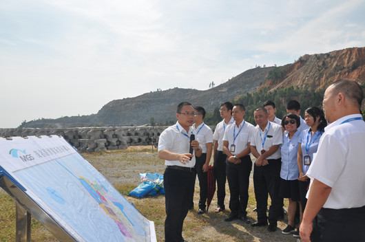 大家首先來(lái)到博賀新港區(qū)東防波堤項(xiàng)目建設(shè)現(xiàn)場(chǎng)。在項(xiàng)目展示平臺(tái)上,羅大方總裁親自向大家闡釋了集團(tuán)“以深水大港為依托,以石化倉(cāng)儲(chǔ)物流產(chǎn)業(yè)為支柱,揚(yáng)長(zhǎng)避短,走差異化發(fā)展道路”的戰(zhàn)略發(fā)展規(guī)劃,詳細(xì)介紹了博賀港區(qū)碼頭的建設(shè)情況,并對(duì)控股公司參觀學(xué)習(xí)人員表達(dá)了殷切期望,勉勵(lì)控股公司同志在工作中加強(qiáng)學(xué)習(xí),為集團(tuán)未來(lái)發(fā)展需要做好能力儲(chǔ)備。