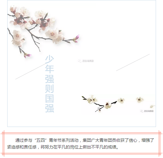 通過參與“五四”青年節(jié)系列活動,集團廣大青年團員收獲了信心,增強了緊迫感和責任感,將努力在平凡的崗位上做出不平凡的成績。 |
