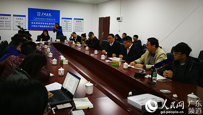 采風(fēng)團(tuán)與通用碼頭建設(shè)項目相關(guān)負(fù)責(zé)人交流。 劉遠(yuǎn)忠攝 據(jù)介紹,博賀新港區(qū)通過建設(shè)大型專業(yè)化深水碼頭,以承擔(dān)煤炭、原油等大宗散貨運輸為主,兼顧散雜貨運輸,引導(dǎo)能源電力、裝備制造等臨港產(chǎn)業(yè)布局,著力發(fā)展物流、信息、綜合服務(wù)等現(xiàn)代化服務(wù)功能,形成區(qū)域性的綜合運輸樞紐,并逐步發(fā)展成粵西地區(qū)重要的規(guī);、綜合性港區(qū)。