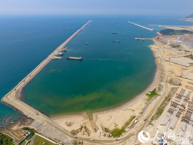 正在建設(shè)中的西防波堤工程。劉遠(yuǎn)忠攝 其中,作為博賀新港區(qū)的重要基石和亮點工程,防波堤工程分為東、西兩段,互為掩護(hù),共同為博賀新港區(qū)形成一個有掩護(hù)的環(huán)抱式的風(fēng)平浪靜的現(xiàn)代化深水良港,為港區(qū)內(nèi)后續(xù)臨港產(chǎn)業(yè)項目建設(shè)、發(fā)展提供優(yōu)良條件。