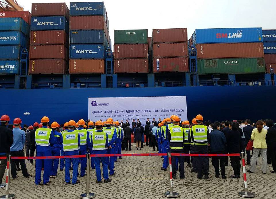 近日,阿聯(lián)酋航運“北部灣港-印度/中東”遠(yuǎn)洋航線首航暨“北部灣港-新加坡”天天班公共航線啟動活動在欽州保稅港區(qū)4#泊位成功舉行。這兩條航線的正式啟動,標(biāo)志著北部灣港至印度/中東遠(yuǎn)洋直航航線及至新加坡天天班公共航線正式開通,這是北部灣港集裝箱遠(yuǎn)洋航線零的突破,也是中新互聯(lián)互通南向通道有效延伸及開拓國際中轉(zhuǎn)業(yè)務(wù)的關(guān)鍵一步。