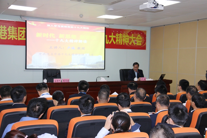 12月8日下午,茂名港集團(tuán)召開黨的十九大精神宣講報告會,邀請了市委宣講團(tuán)成員、廣東石油化工學(xué)院盧誠教授作專題輔導(dǎo)講座。集團(tuán)黨委書記、董事長劉乃英主持報告會。 報告中,盧誠教授圍繞“新時代、新思想、新征程”這一主題,從“全面認(rèn)識十九大報告的新內(nèi)涵”、“十九大對《黨章》的修改”、“十九大給我們帶來的新生活”三個部分,圍繞黨的十九大主題和主要成果、習(xí)近平新時代中國特色社會主義思想、新時代中國特色社會主義基本方略、新時代中國特色社會主義全面戰(zhàn)略安排部署等方面對黨的十九大精神進(jìn)行了細(xì)致深入的解讀。