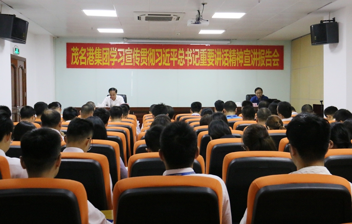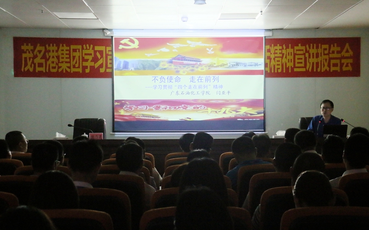 | 為進一步學習宣傳貫徹習近平總書記參加廣東代表團審議時的重要講話精神,幫助全體干部職工更好地領悟習近平總書記重要講話深刻內(nèi)涵,4月26日上午,茂名港集團邀請市委宣講團成員、廣東石油化工學院教授閆亞平作習近平總書記重要講話精神專題宣講報告。集團黨委書記、董事長劉乃英主持會議。集團總裁羅大方、黨委副書記肖炳璋、副總裁楊超燦以及機關全體人員、各下屬公司經(jīng)營班子和黨員職工代表100多人聆聽了報告會。
