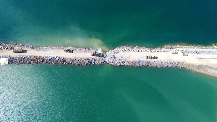在粵西LNG造陸項目現場,趙廣輝認真聽取了項目負責人員關于項目合攏情況的匯報,詳細了解項目后續(xù)工作規(guī)劃。他肯定了茂名港集團作為業(yè)主單位在項目建設過程中不等不靠、主動作為,在與東西防波堤工程體量相當的情況下,克服了資金緊、任務重、風險大、協(xié)調難等重重困難,在疫情期間解決了復工難的問題,順利實現了項目的合攏,標志著粵西LNG造陸項目基本具備交地條件,再次創(chuàng)造了屬于茂名港人的奇跡。他指出,粵西LNG造陸項目的建成,為粵西LNG接收站項目的落地夯實了基礎,對濱海新區(qū)發(fā)展綠色臨港產業(yè)具有重要而深遠的意義。他希望茂名港集團繼續(xù)發(fā)揮好濱海新區(qū)籌融資和項目建設平臺作用,充分總結、運用粵西LNG造陸項目建設管理經驗,攻堅克難,進一步助力濱海新區(qū)加快向海而興發(fā)展。