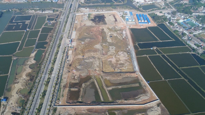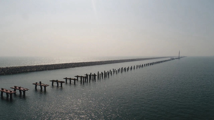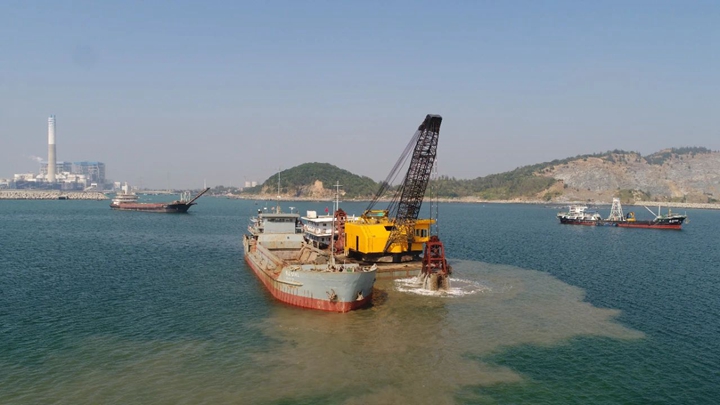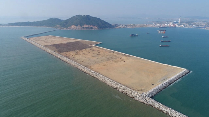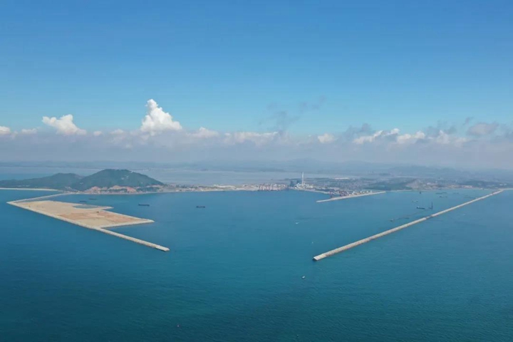 鳥瞰茂名港務(wù)中心施工現(xiàn)場(chǎng)