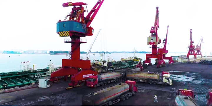 2021年元月,集團下屬中油王港公司、港口經(jīng)營公司作業(yè)區(qū)內裝載車輛穿梭如流、門吊裝卸不停,一派繁忙景象。