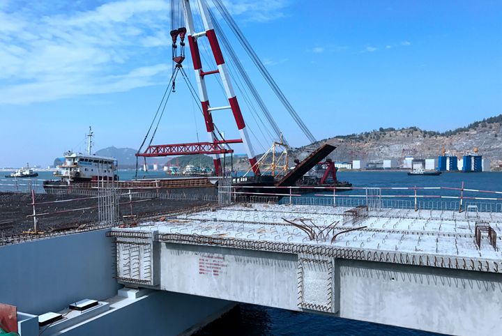 博賀新港區(qū)建設(shè)現(xiàn)場往來工程車輛川流不息,工地人員各司其職,各項工序有條不紊,處處展現(xiàn)出一派熱火朝天的建設(shè)景象。