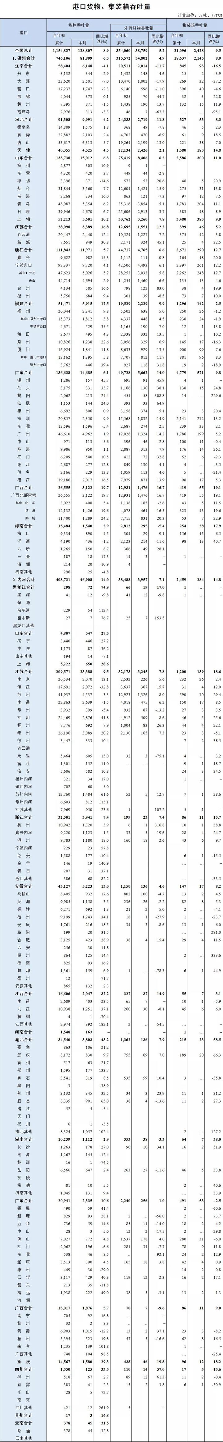 根據(jù)交通運輸部數(shù)據(jù),1-9月,全國港口完成貨物吞吐量115.48億噸,同比增長8.9%;完成集裝箱吞吐量2.11億TEU,同比增長9.5%。其中,沿海港口完成貨物吞吐量74.6億噸,同比增長6.3%;完成集裝箱吞吐量1.86億TEU,同比增長8.9%。 9月份,兩大榜單排名未見變化,只是增速進一步放緩,集裝箱吞吐量方面東莞港已與去年持平,福州港吞吐量增速轉(zhuǎn)為負數(shù),不過從總體來看,集裝箱吞吐量與貨物吞吐量的增速降幅不大,已進入平穩(wěn)增長區(qū)間。從海關(guān)數(shù)據(jù)來看,9月份當月進出口同比增長15.4%,增速較8月份回落了3.5個百分點。 港口圈認為,這不意味著港口總體向好的發(fā)展趨勢就此打住,9月份,臺風對長三角、東南沿海、珠三角各大港口生產(chǎn)運輸都有影響,限電也波及各制造業(yè)大省,可能導(dǎo)致出口貨物減少。但這些因素的陰霾不會持續(xù)太久,在國家力保煤電供應(yīng)的政策下,第四季度港口生產(chǎn)數(shù)據(jù)仍將保持相對穩(wěn)定的增長。 附交通運輸部完整數(shù)據(jù):