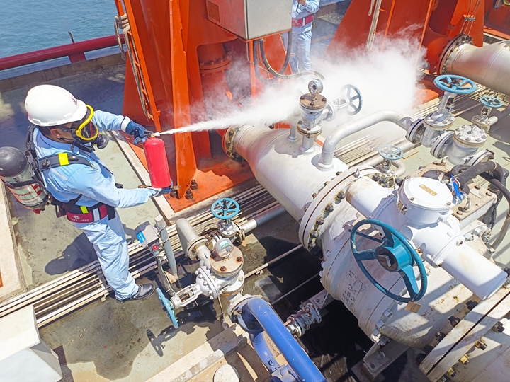 演練現(xiàn)場(chǎng),警報(bào)聲響起,人員、車輛迅速集結(jié)到位。按照搶險(xiǎn)救災(zāi)組、疏散警戒組、通訊聯(lián)絡(luò)組、后勤保障組、醫(yī)療救護(hù)組、后勤醫(yī)療組等五個(gè)工作組的分工要求,參演人員各就各位、各司其責(zé)。他們有的迅速疏散無關(guān)人員完成現(xiàn)場(chǎng)警戒;有的迅速向市公司指揮中心及相關(guān)部門報(bào)告情況;有的迅速使用消防水泵泡沫泵、干粉滅火器撲滅初期火災(zāi),并對(duì)泊位E2裝卸區(qū)進(jìn)行全面冷卻;有的迅速開展醫(yī)療及后勤等方面的應(yīng)急處理。各參演小組反應(yīng)快速、緊密配合、協(xié)同作戰(zhàn),現(xiàn)場(chǎng)警戒、人員疏散、滅火救援、后勤保障等各項(xiàng)應(yīng)急動(dòng)作有序進(jìn)行,處理流程和處理措施合理有效。