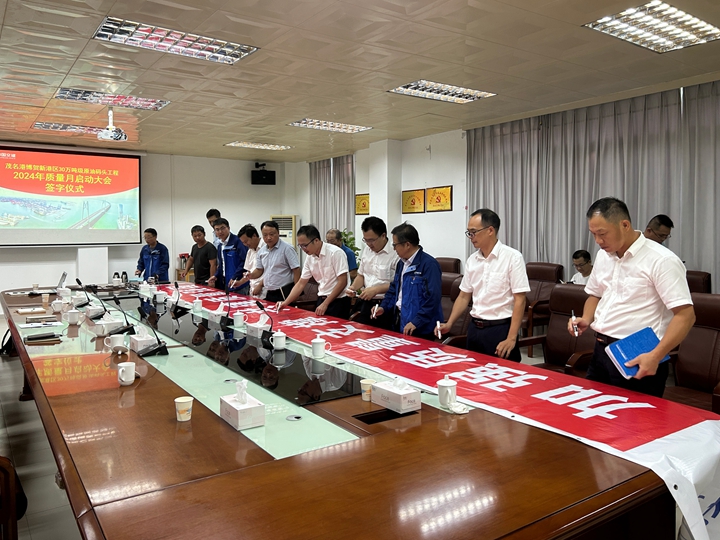 9月2號(hào),茂名港博賀新港區(qū)30萬噸級(jí)原油碼頭工程召開了2024年“質(zhì)量月”活動(dòng)啟動(dòng)儀式。會(huì)議由茂名港博賀新港區(qū)30萬噸級(jí)原油碼頭項(xiàng)目經(jīng)理部(以下簡(jiǎn)稱原油碼頭項(xiàng)目經(jīng)理部)經(jīng)理梁祖釗主持召開,原油碼頭項(xiàng)目經(jīng)理部、中交一航局第二工程有限公司(以下簡(jiǎn)稱施工單位)、廣州港工程管理有限公司(以下簡(jiǎn)稱監(jiān)理單位)等參建單位參加了本次啟動(dòng)儀式。