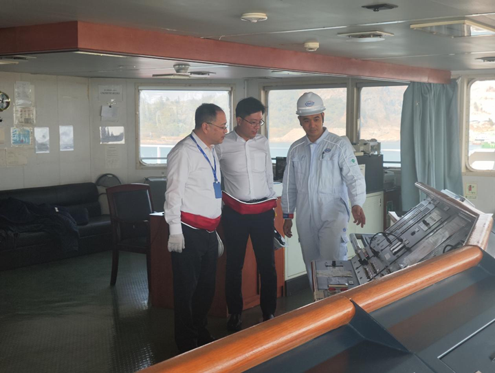 期間,秦炯參觀了甲板和機(jī)艙,詳細(xì)了解了船舶的維護(hù)保養(yǎng)情況,聽(tīng)取了船員們的日常工作開(kāi)展情況,深入了解船舶的運(yùn)營(yíng)狀況與船員生活狀況,了解他們所思所想所盼。同時(shí),秦炯代表中遠(yuǎn)海運(yùn)能源公司向全體船員致以元旦問(wèn)候,并強(qiáng)調(diào)節(jié)日期間要加強(qiáng)安全工作,共慶新年,勉勵(lì)船員們高質(zhì)量、高效率地完成各項(xiàng)任務(wù),以實(shí)際行動(dòng)為新的貢獻(xiàn)作出努力。他還強(qiáng)調(diào),茂名港集團(tuán)與中遠(yuǎn)海運(yùn)能源公司的合作具有廣闊的前景和巨大的潛力,期待雙方進(jìn)一步發(fā)揮各自優(yōu)勢(shì),實(shí)現(xiàn)資源共享、優(yōu)勢(shì)互補(bǔ)。