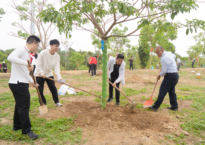 活動現(xiàn)場,集團職工們熱情高漲,分工協(xié)作,揮鍬鏟土、扶苗填坑、提水澆灌,認(rèn)真細(xì)致地完成每一道植樹工序。大家還為每棵新栽種的樹苗掛上專屬紀(jì)念銘牌,寄托對綠色發(fā)展的美好祝愿。在大家的共同努力下,一棵棵樹苗扎根沃土,在春日里煥發(fā)出勃勃生機,為茂名大地增添了一抹新綠。 一直以來,茂名港集團都積極支持茂名的植樹造林工作,將綠色發(fā)展理念融入企業(yè)發(fā)展的各個環(huán)節(jié)。在日常生產(chǎn)經(jīng)營中,集團注重節(jié)能減排、環(huán)境保護,推動港口作業(yè)的綠色化、智能化升級。此次參與“綠美茂名·好心林”公益植樹活動,是集團踐行社會責(zé)任、助力茂名生態(tài)建設(shè)的又一具體舉措。