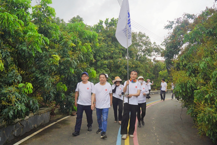 活動當天,集團員工們身著統(tǒng)一服裝,精神飽滿地參與了全程2公里的文化徒步。沿途,大家熱情投入到彩虹跑、古荔打卡等12項特色活動中。在古荔園內(nèi),員工們重點參觀了七棵千年古荔樹,并積極參與收集以"五世同堂"等古荔樹為原型的定制文創(chuàng)印章。