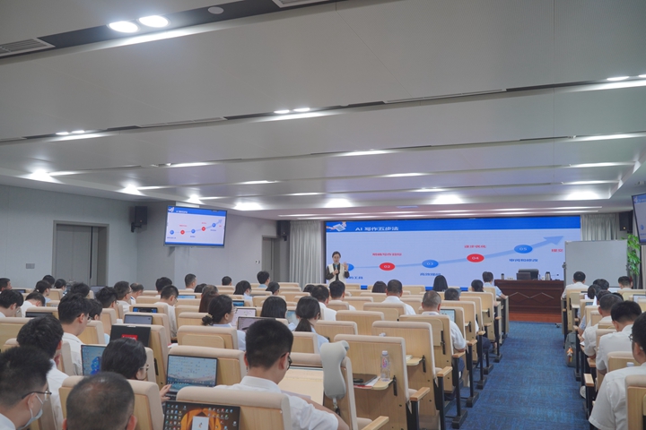 5月22日,集團(tuán)在港務(wù)中心成功舉辦“Ai上寫(xiě)作”專題培訓(xùn)。集團(tuán)黨委委員、副總裁周成出席并致辭,集團(tuán)機(jī)關(guān)及各下屬企業(yè)的100余名干部職工參加培訓(xùn)。