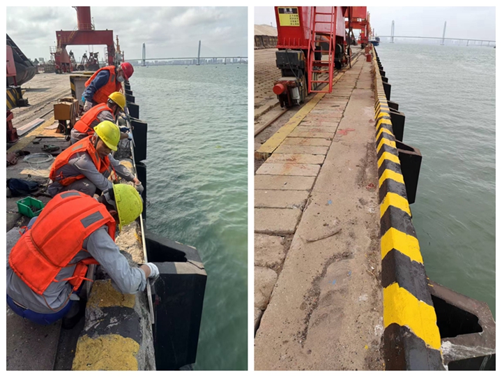 在日常安全巡查中,發(fā)現(xiàn)港口經(jīng)營(yíng)公司萬(wàn)噸級(jí)碼頭前沿?cái)r水坎,出現(xiàn)局部混凝土損壞、鋼筋裸露的情況,若不及時(shí)修復(fù),將對(duì)海洋安全產(chǎn)生環(huán)境污染。按常規(guī)流程,該項(xiàng)修復(fù)工作費(fèi)用高、工期長(zhǎng)且需外委專業(yè)施工隊(duì),但公司黨支部在“書(shū)記項(xiàng)目”推進(jìn)會(huì)上明確要求:“在確保安全與質(zhì)量的前提下,能自主完成的絕不外委!”港口經(jīng)營(yíng)公司黨支部書(shū)記劉芳芳主動(dòng)領(lǐng)題,牽頭組織黨員干部,集結(jié)涵蓋結(jié)構(gòu)工程、機(jī)械維修、安全管理等專業(yè)的黨員技術(shù)骨干,把“硬骨頭”變成“練兵場(chǎng)”。 “攔水坎修復(fù)要兼顧船舶靠泊時(shí)產(chǎn)生的擠壓碰撞力,混凝土配比、鋼筋加固都得精準(zhǔn)!秉h支部組織委員、副總經(jīng)理黎陽(yáng)生是港口經(jīng)營(yíng)公司技術(shù)“總工程師”,他帶著黨員維修組白天測(cè)量損壞面積、記錄鋼筋變形數(shù)據(jù),晚上研究修復(fù)技術(shù)規(guī)范,反復(fù)驗(yàn)算修復(fù)方案。為節(jié)省成本,他們翻遍倉(cāng)庫(kù)“淘”出閑置的高強(qiáng)度螺紋鋼,自主切割焊接;利用碼頭現(xiàn)有的混凝土攪拌設(shè)備,按實(shí)驗(yàn)配比調(diào)配修補(bǔ)材料,經(jīng)過(guò)多次試驗(yàn),最終確定“基層清理+鋼筋網(wǎng)加固+分層澆筑+防水警示涂層”的修復(fù)工藝。