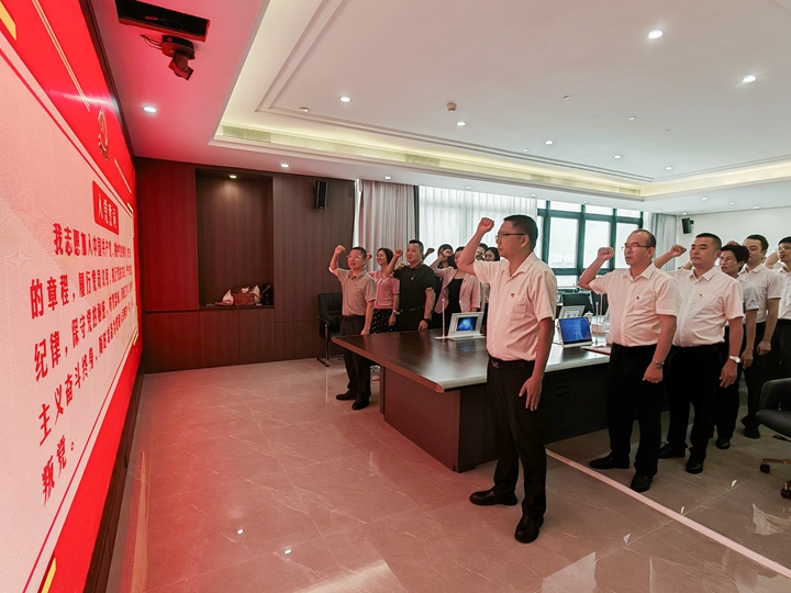 為深入學(xué)習(xí)貫徹習(xí)近平新時(shí)代中國特色社會主義思想,進(jìn)一步加強(qiáng)黨建引領(lǐng),推動黨建與業(yè)務(wù)深度融合,7月15日,茂名港集團(tuán)機(jī)關(guān)黨支部與中國人民銀行茂名市分行宏觀審慎與金融市場管理科黨支部、國家外匯管理局茂名市分局黨總支聯(lián)合開展了主題黨日活動。中國人民銀行茂名市分行二級調(diào)研員嚴(yán)青,集團(tuán)黨委委員、副總裁楊超燦以及雙方黨支部書記、黨員代表共20余人參加活動。