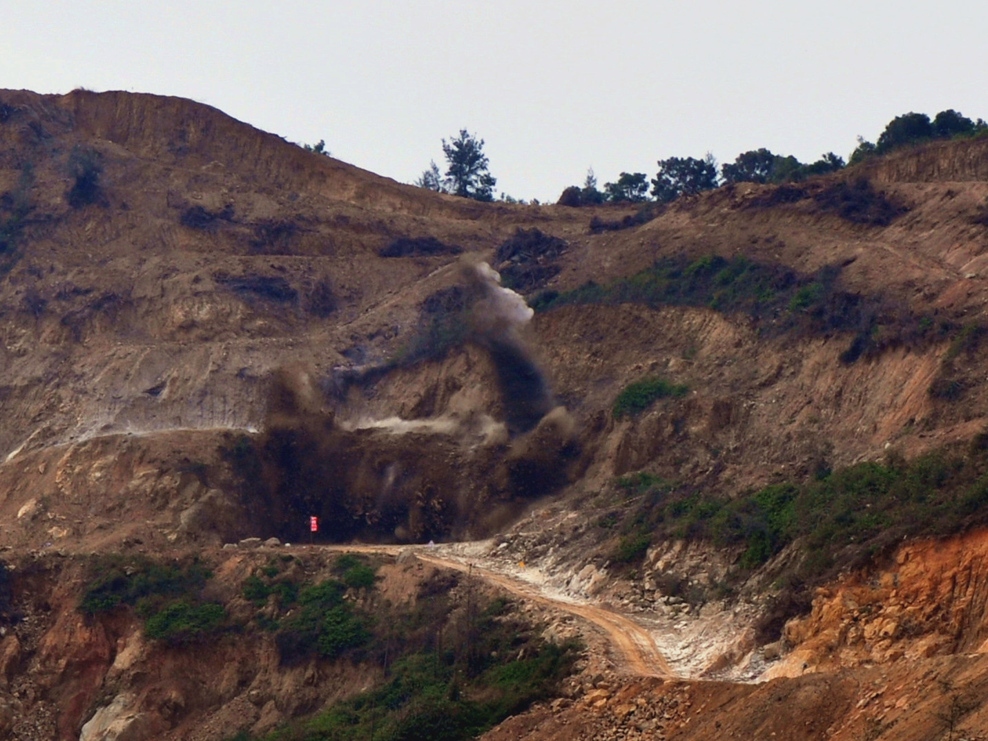 項(xiàng)目施工方十分重視本次爆破工作,認(rèn)真組織,順利完成了本次爆破相關(guān)手續(xù)及爆破前的各項(xiàng)準(zhǔn)備工作。本次爆破地點(diǎn)在東閣嶺西南面海側(cè),背向村莊,距離周邊村莊房屋比較遠(yuǎn),此次爆破設(shè)立了6個安全警戒崗,按規(guī)定對爆炸范圍進(jìn)行清場,并采用先進(jìn)的深孔爆破的方式,對周邊環(huán)境影響甚小。