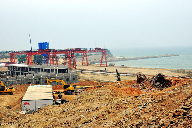 備受茂名人民關注的茂名港博賀新港區(qū)東、西防波堤工程在市委市政府的高度重視以及各部門的大力支持下,項目于去年12月16日正式動工建設,截至2月底,東防波堤已完成堤心石拋填4.8萬m3和完成規(guī)格石拋填5000m3,形成堤長280m。大型臨時工程扭王塊預制場的回填、兩臺門機以及兩臺攪拌站安裝亦已經(jīng)完成,施工方正抓緊建設門機軌道、余下的兩臺門機以及其他輔助設施。
