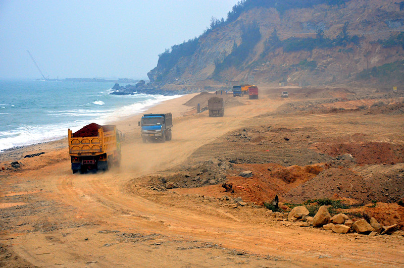 博賀新港區(qū)西防波堤施工便道建設現(xiàn)場