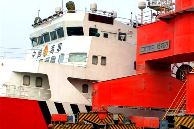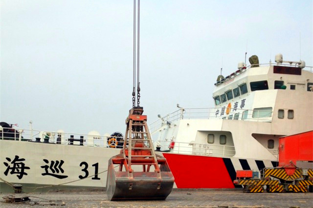 “海巡31”船?扛劭诮(jīng)營(yíng)公司萬(wàn)噸級(jí)碼頭進(jìn)行物質(zhì)補(bǔ)給